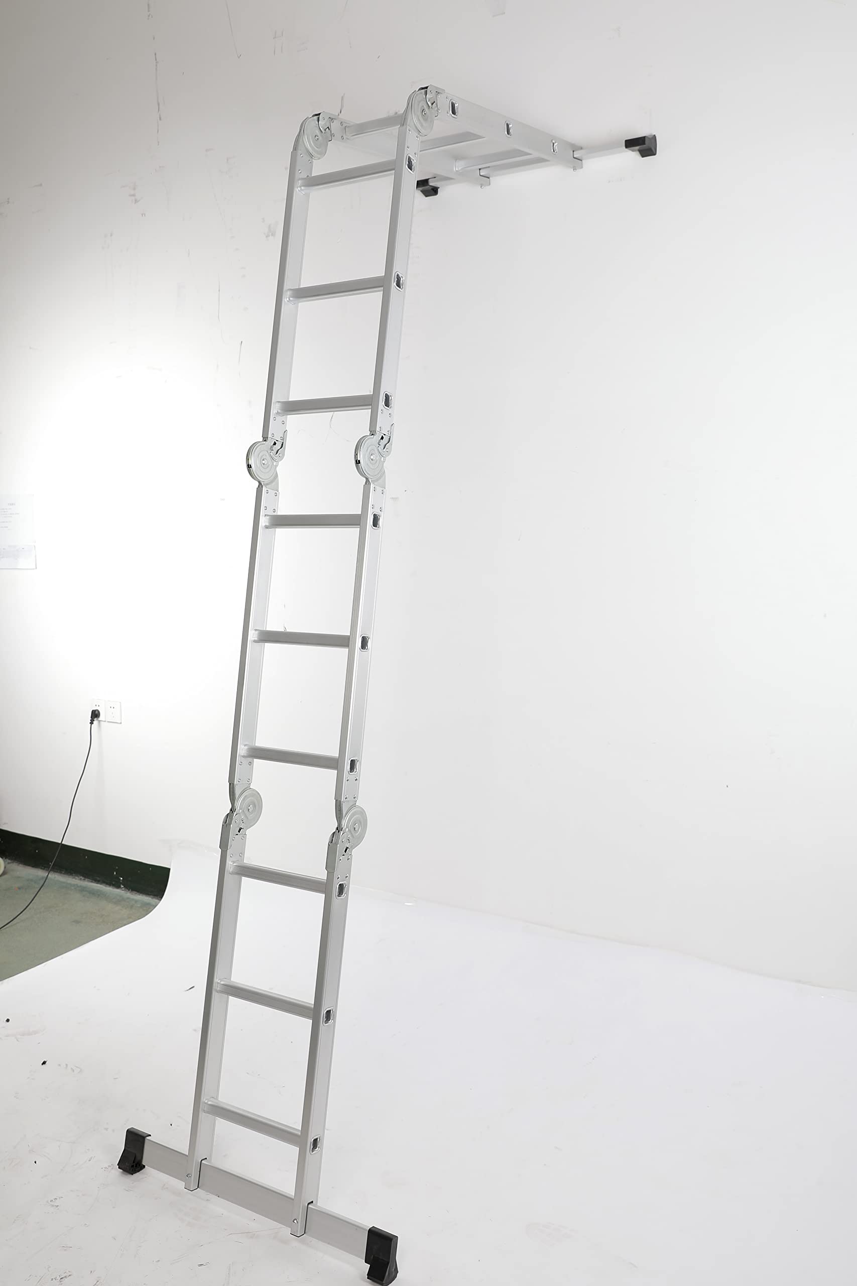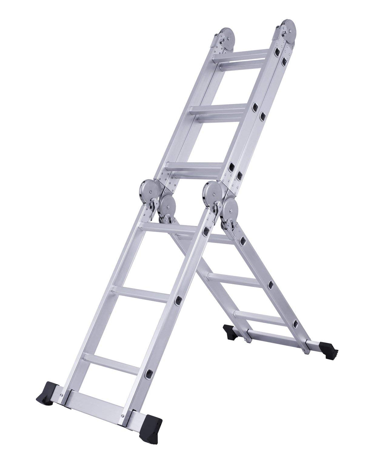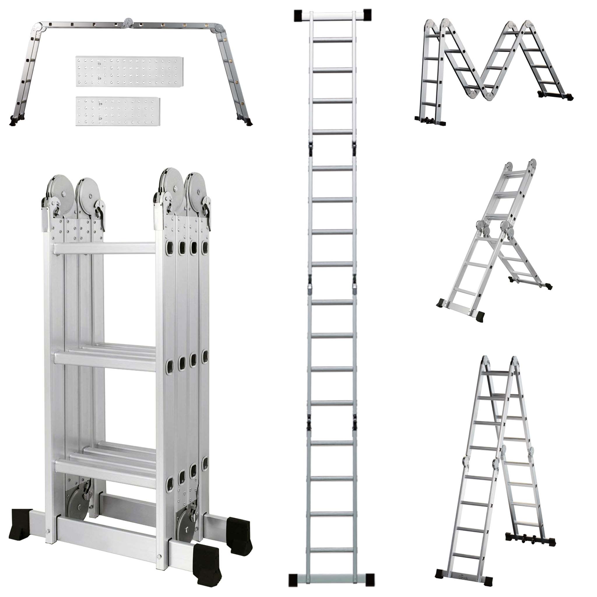 • 7-in-1 Multi Purpose: With its innovative design, this ladder can be configured into multiple positions to suit your specific needs, It can be used as A-frame ladder, straight ladder, stairway platform, M-shaped ladder, overhang ladder and scaffold.