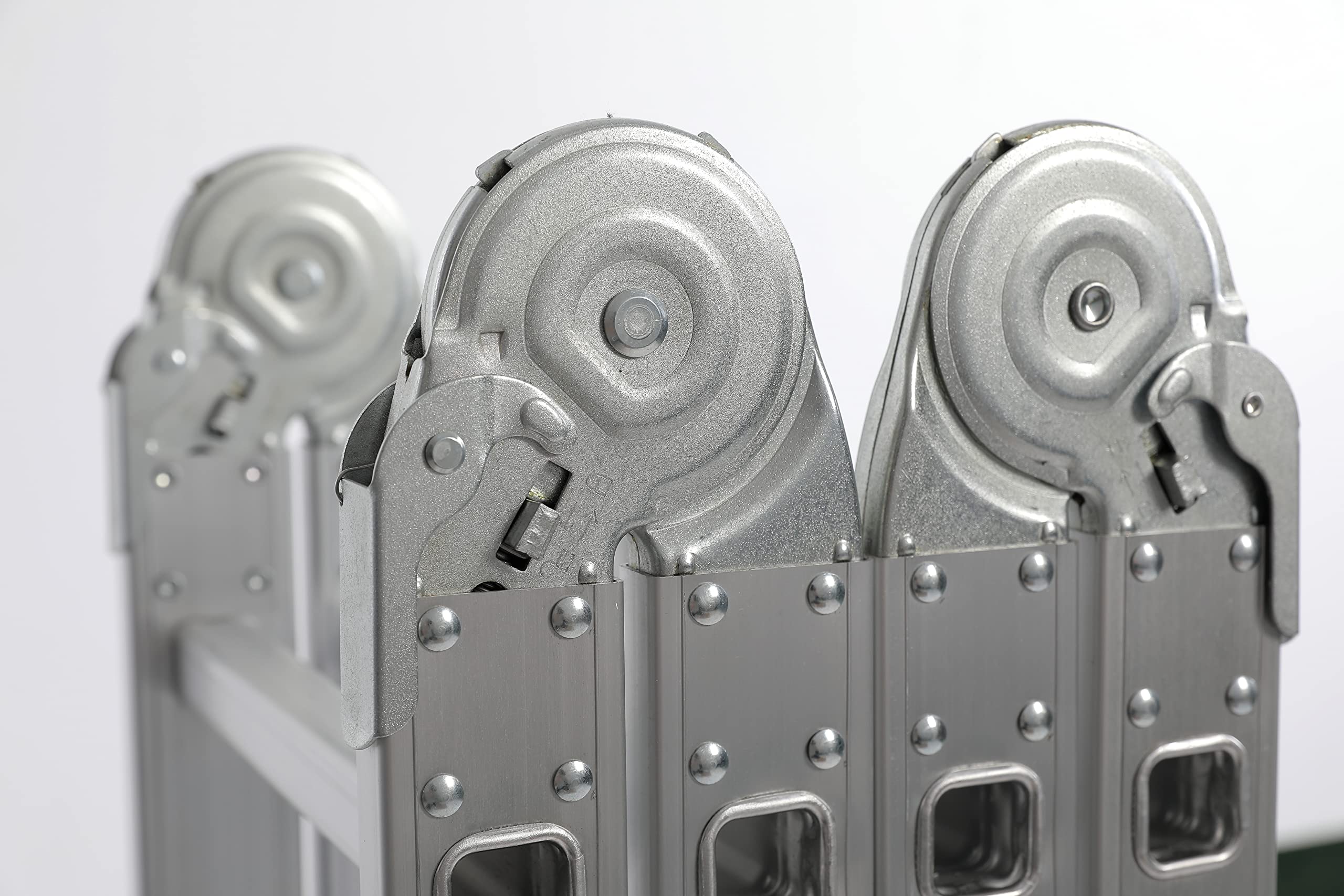 • Safety First: Your safety is our priority. This multipurpose ladder EN131 Certified. This ladder is equipped with lockable hinges. It not only allow you to lock and unlock easily for the safety, but also have different angles (0°/45°/90°/180°) for change the shape of the ladder, ensuring for different uses . The design of large joints provides better load-bearing and durability.