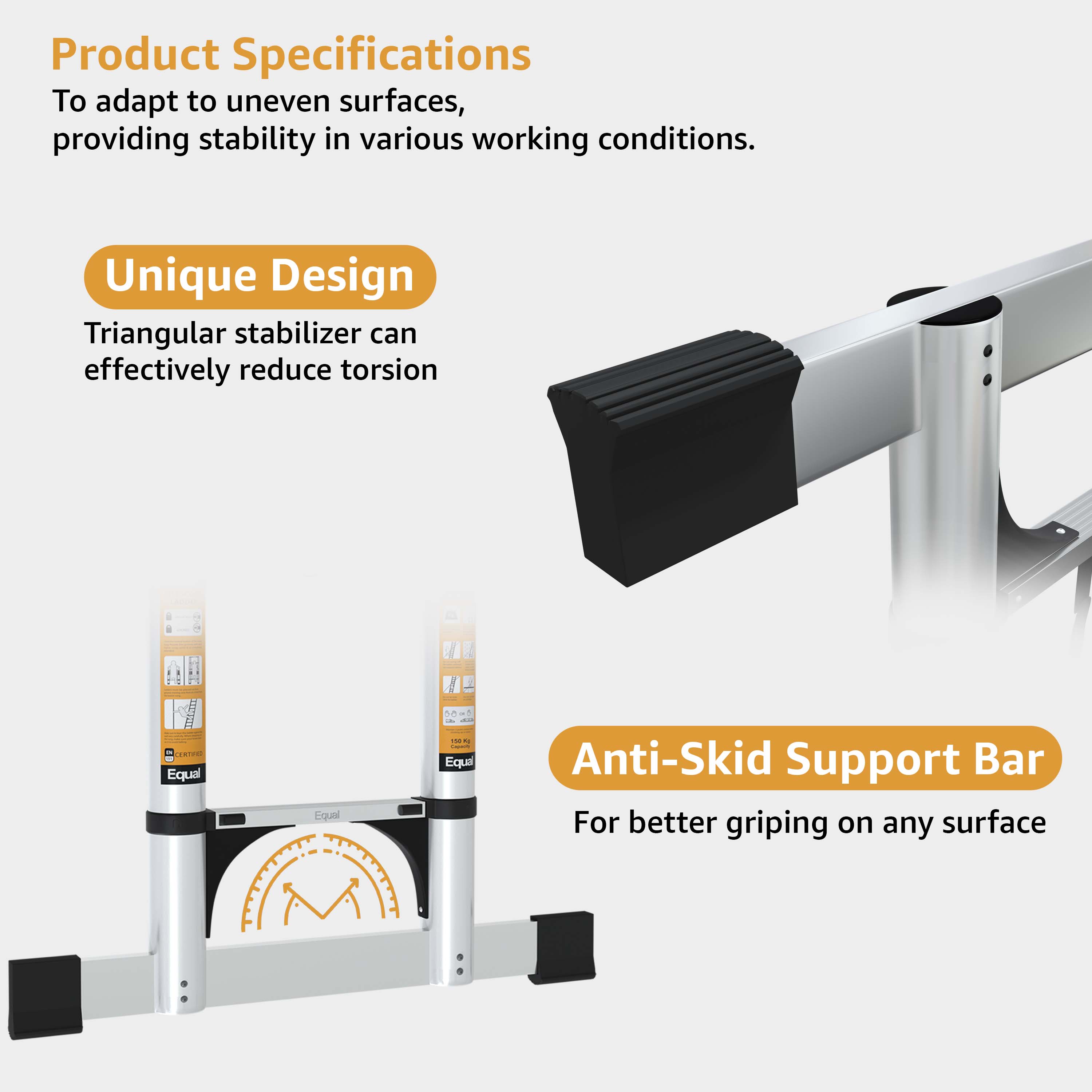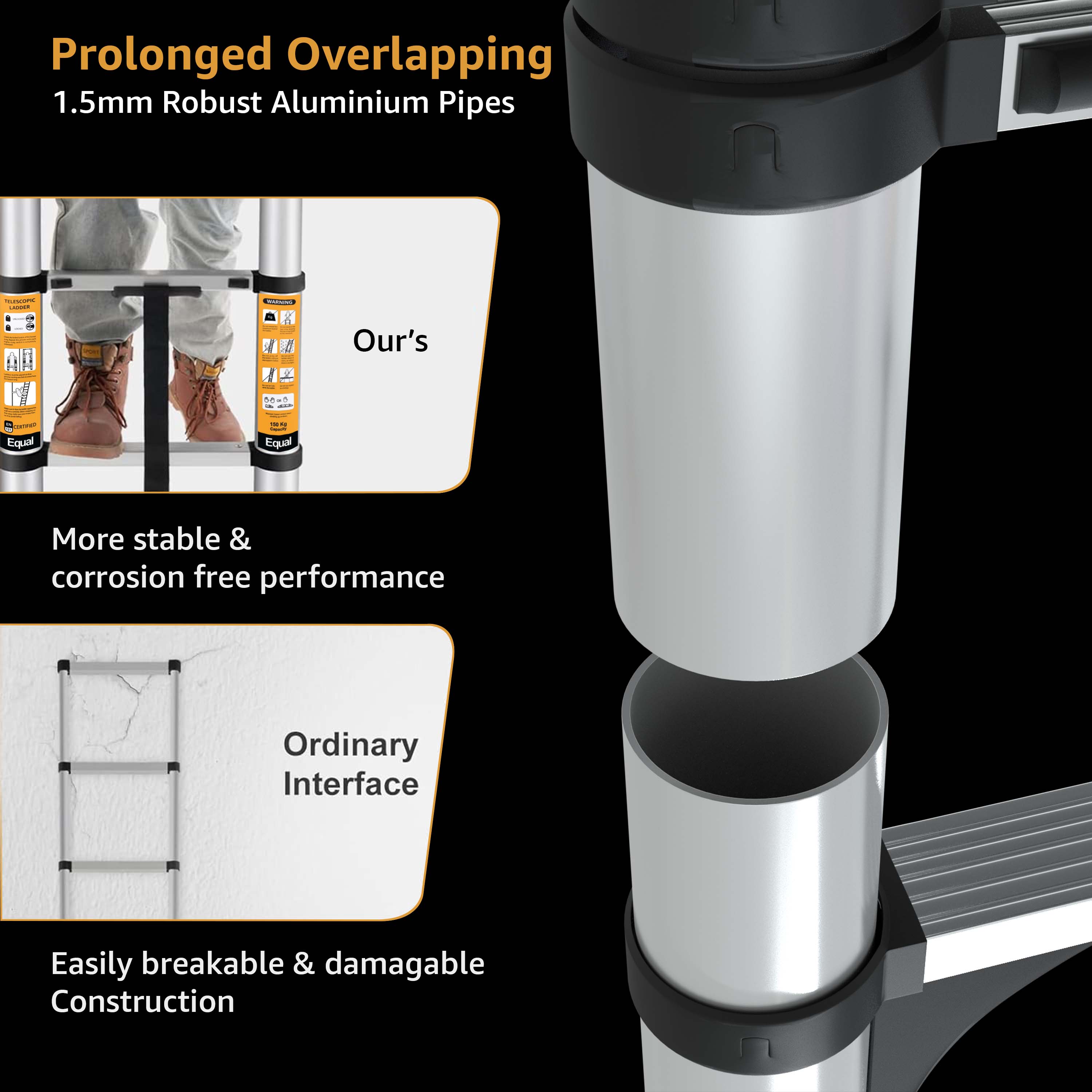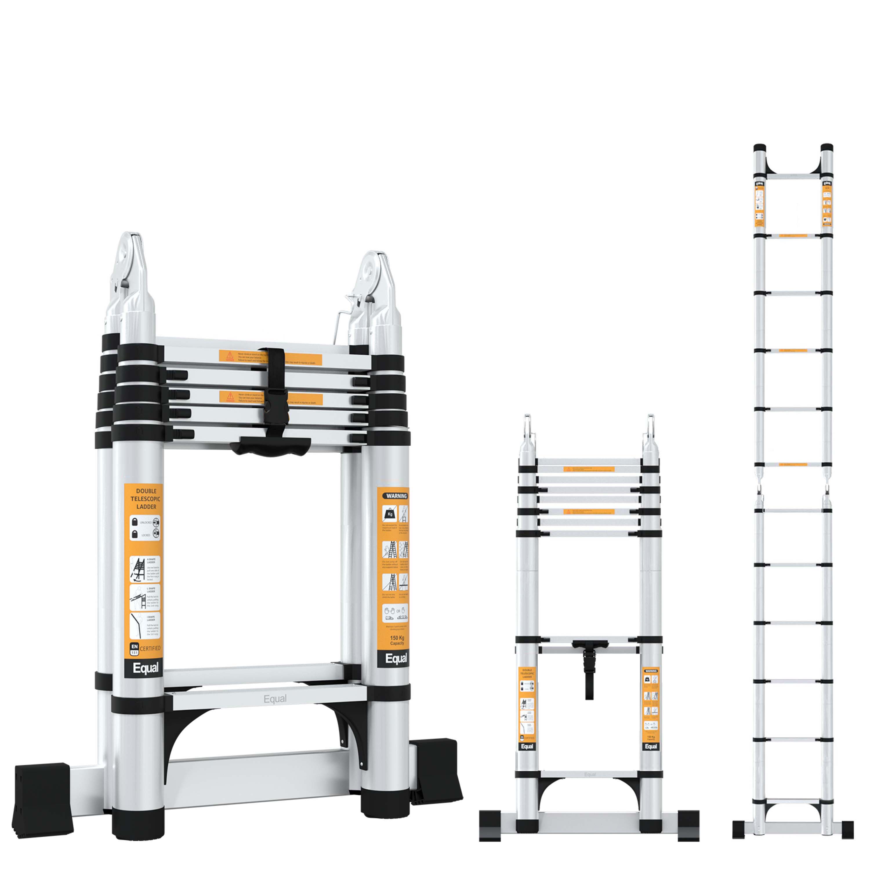 Equal 12.5 FT 2-IN-1 Aluminum Telescopic Ladder with 2 Triangle Support & Stabilizers | EN131 Certified with 2 Year Warranty | 150kg Max Capacity | Ladder for Home or Outdoor Work (3.8m/6+6 Step)