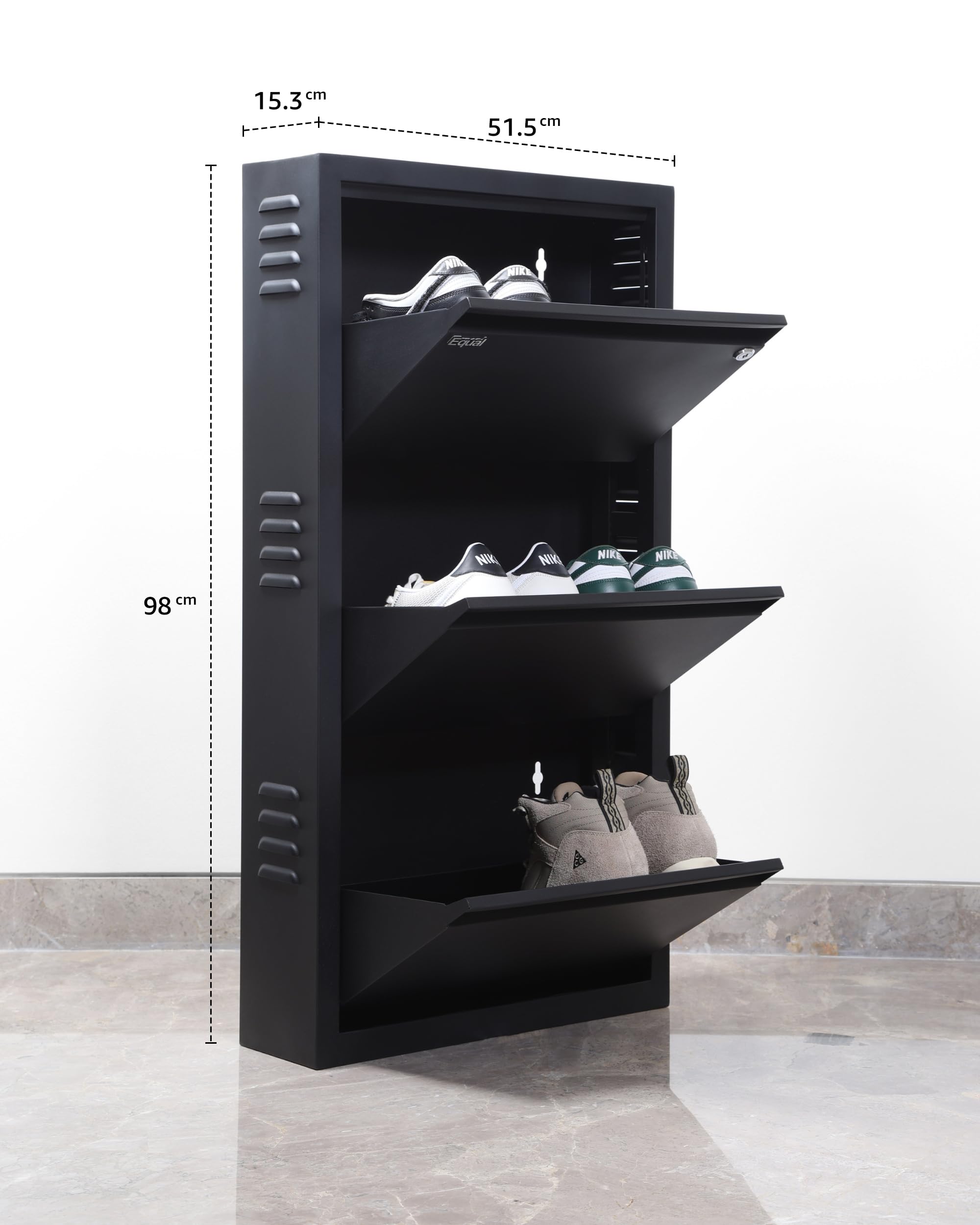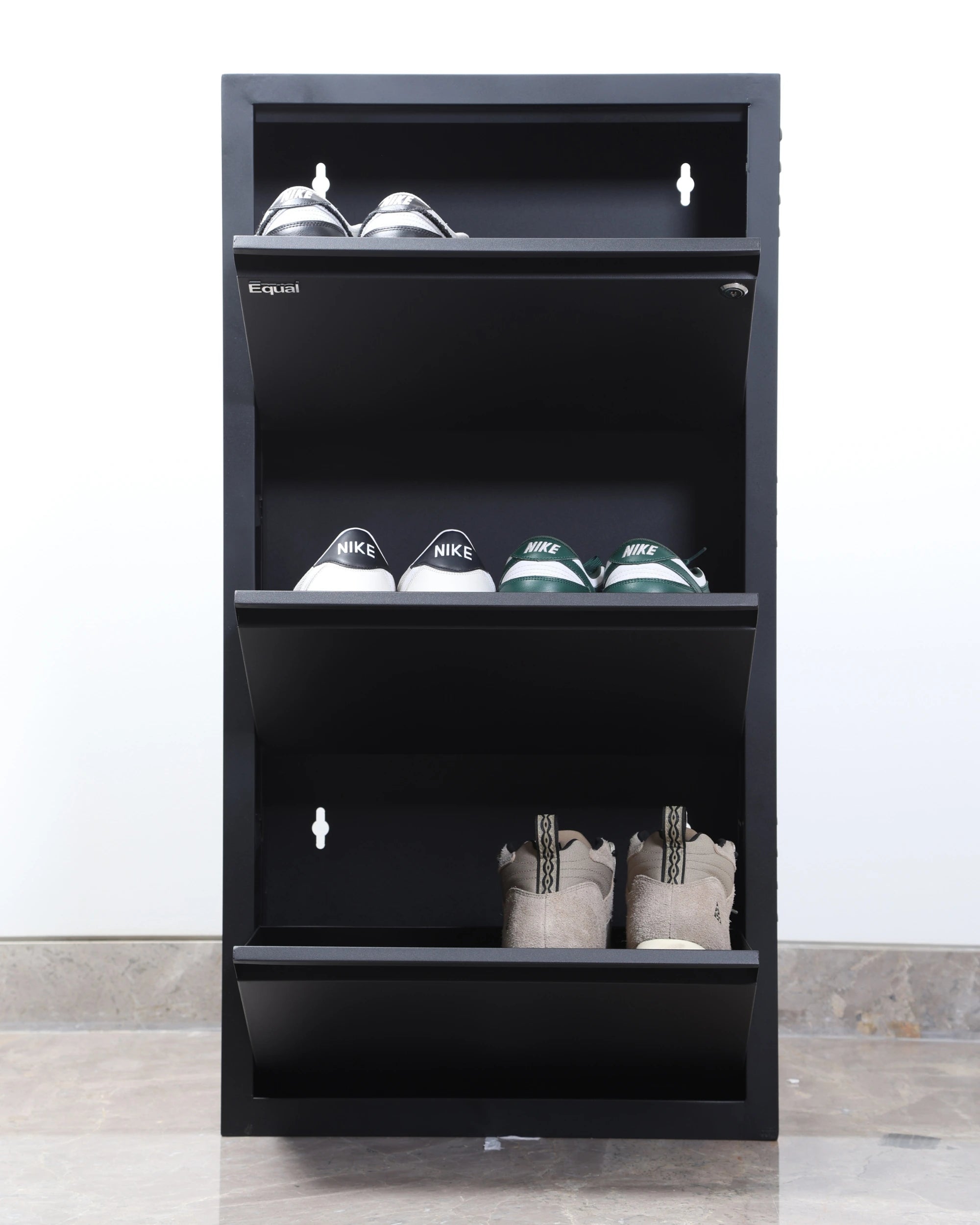 Equal 3 Shelf Lite Shoe Rack for Home | Economic Mild Steel Shoe Cabinet for Home holds upto 6-8 pairs of shoes | 3 Years Limited Warranty | 3 Shelf - Matte Black