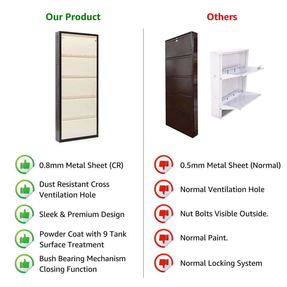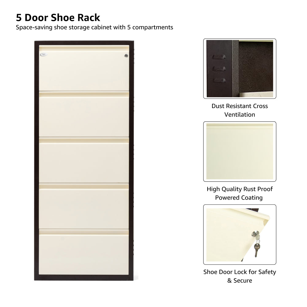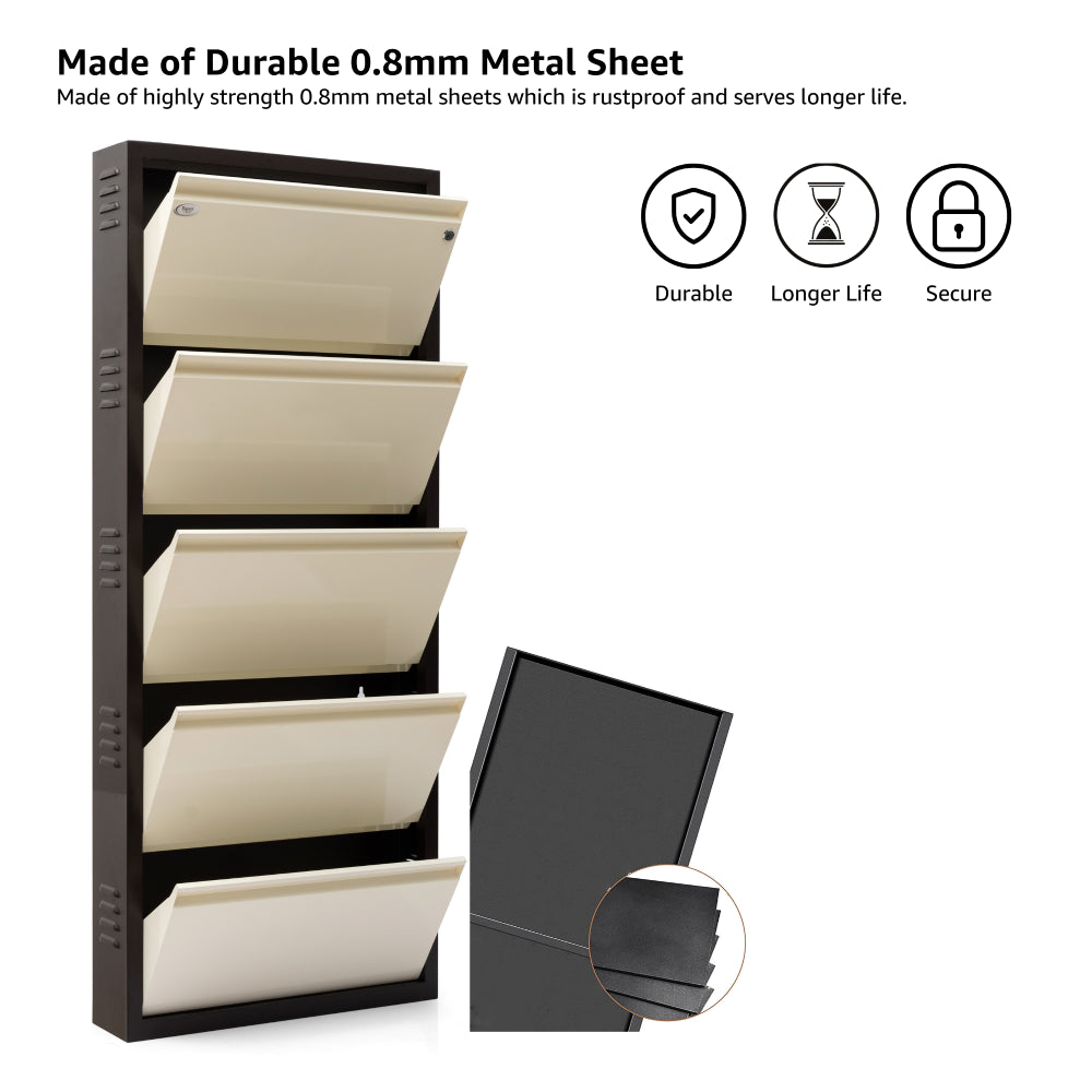 Equal 5 Door Wall Mounted Mild Steel Shoe Rack for Home with Lock