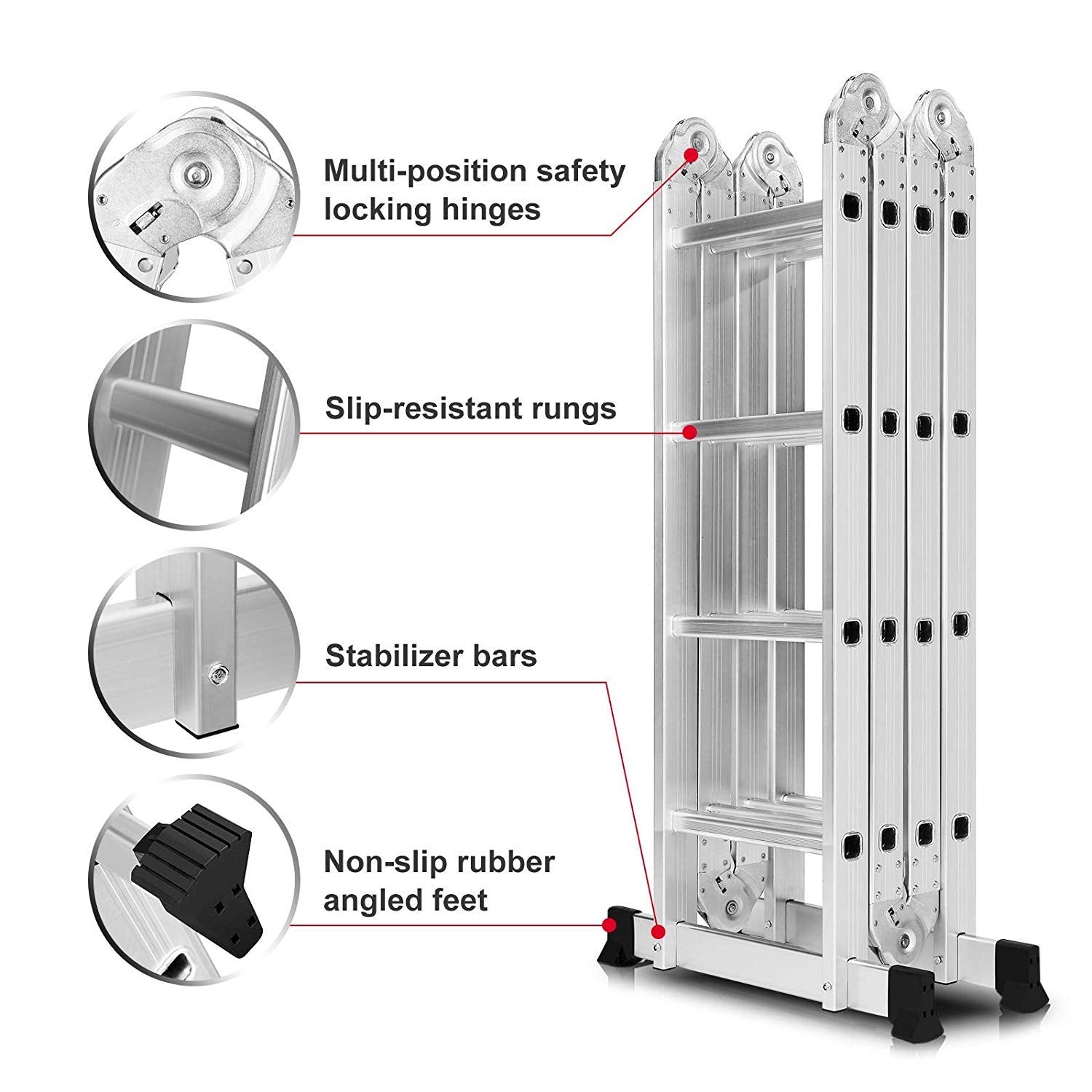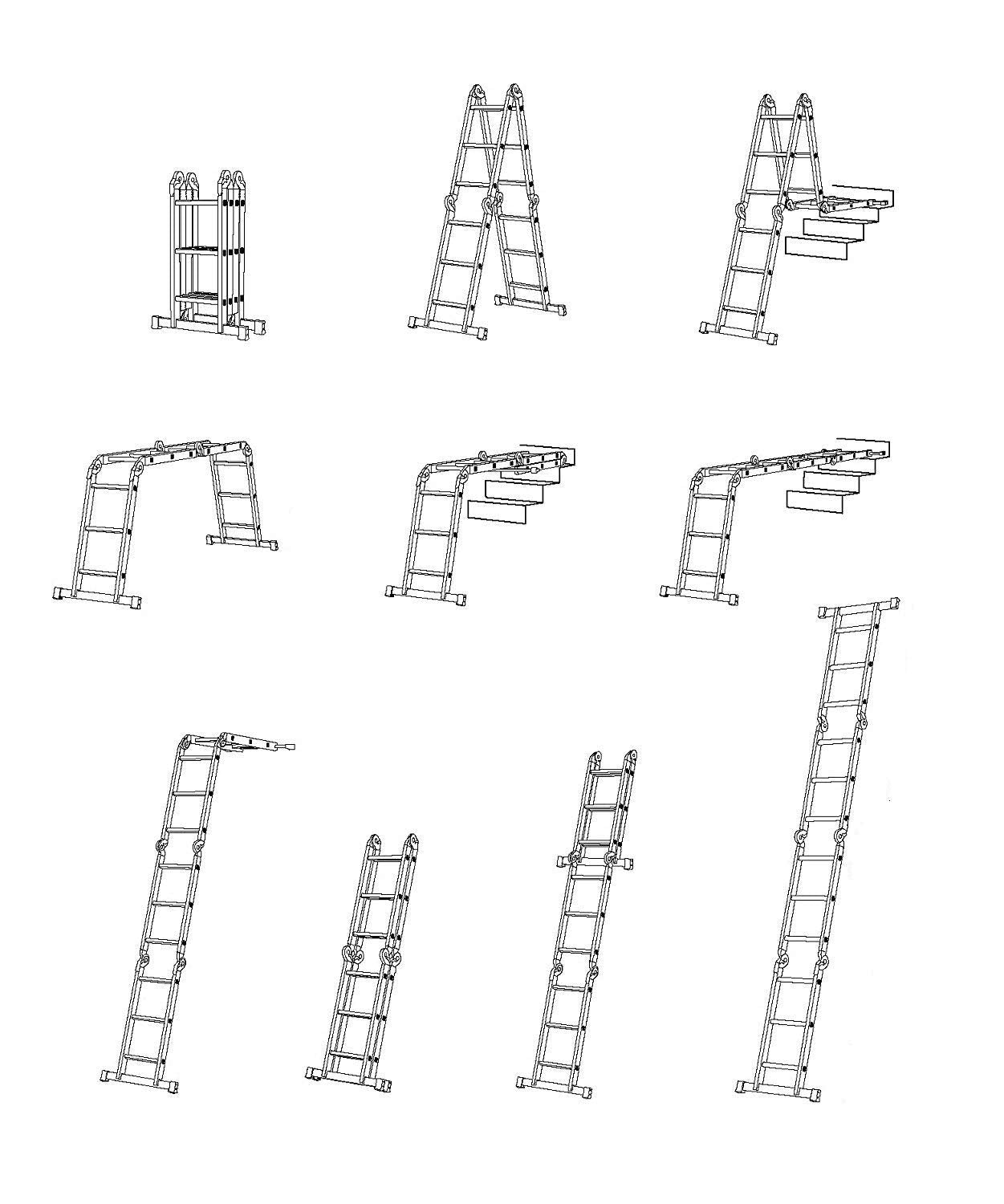 • Multipleuse Position: This ladder can be used in different position to help you easily do your work. The positions include Step Ladder position, Straight Ladder position, Stand-off Ladder position, Scaffold Position & A Type Position.