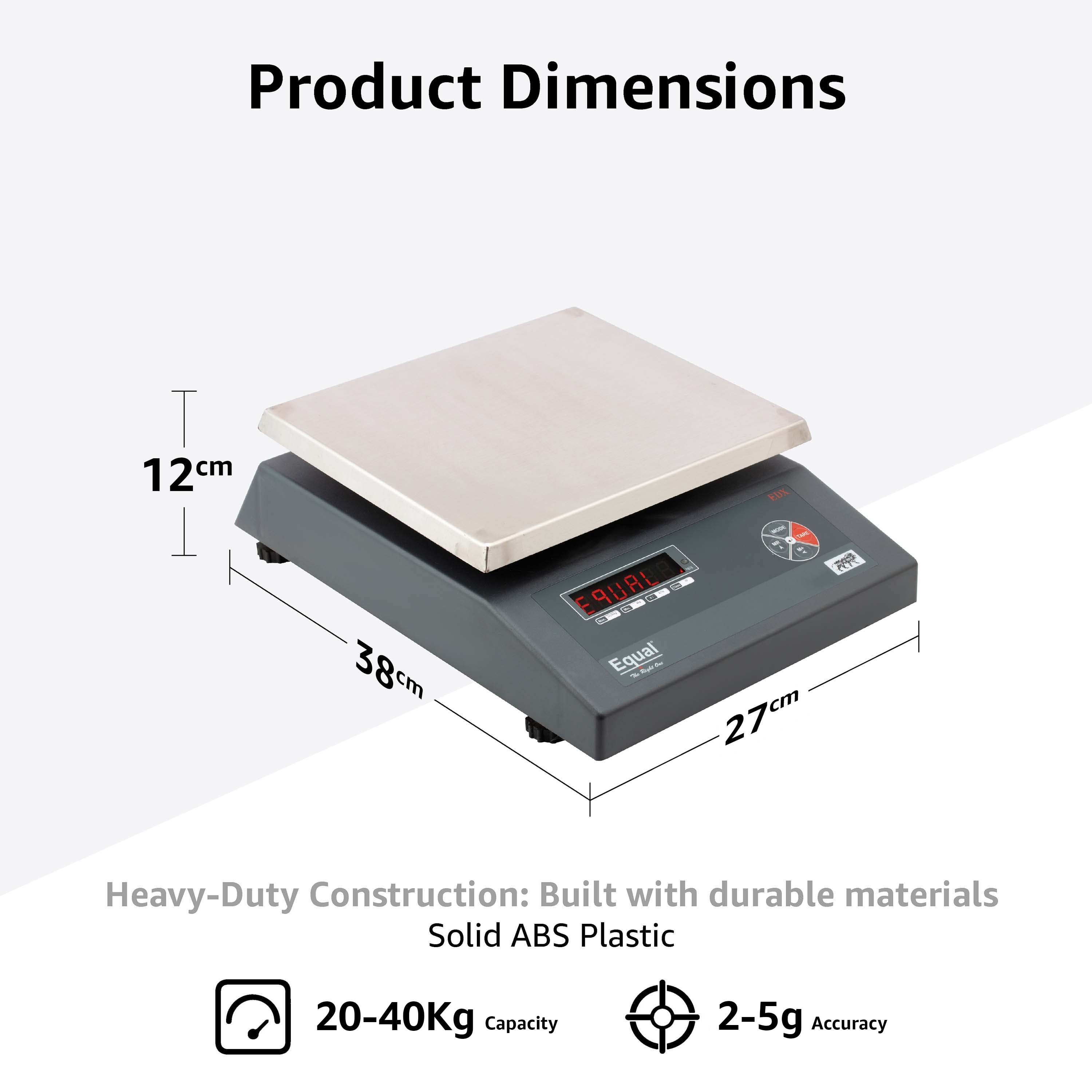 Equal 20/40kg Capacity Electronics Digital Table Top Kitchen Weighing Scale; 240x280mm