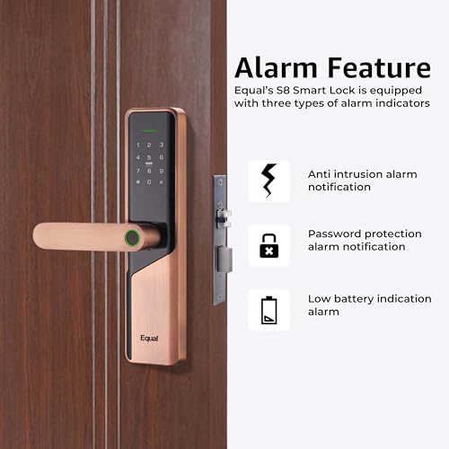Equal Smart Door Lock S8 WiFi in Red Metal: Fingerprint & 5 More Ways to Unlock; Wooden Door Compatible; 1-Year Warranty.
