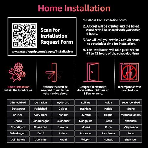 Equal Smart Door Lock A8 WiFi in Matte Black: Fingerprint & 5 More Ways to Unlock; Wooden Door Compatible; 1-Year Warranty.