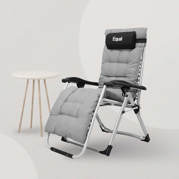 The Recliner Chairs is designed for your ultimate comfort. The armrests of the outdoor upholstered lounge chair are thick and contoured. The ergonomically designed recliner relieves pressure on your spine, improves blood circulation, reduces your muscle tension, and achieves the perfect balance between firmness and softness. This chair can be adjusted from 90º to 170º-degree angle. This amazing feature of outdoor recliner chair helps you select the optimal angle that brings you to a comfortable, relaxing position. This folding lawn chair can be folded and unfolded in seconds. The camping lounge chairs are easy to transport and store, and you can easily carry them by car, Perfect for relaxing on the patio, at the beach or reclining outdoors in the yard. Removable wide pad that can be used as a headrest, lumbar support or other support purposes. Material & Color: This recliner chair frame is made of powder-coated mild steel frame for strength and lightweight portability, chair seat is made of durable polyester fabric and cushion is made of soft jute. Color; Grey Size & Capacity: Set up size is 90L x 65W x 110H in Cm, off ground seat height is 66cm, back height is 80cm, seat width is 45.5cm. Folding size is 12L x 65W x 94H in Cm. Support Capacity to 120 kg. Safe Reclining Locking System: The reclining chiar is designed with a locking system and can be adjusted to any position with 0-160 degrees as your preference. Comfortable & Ergonomic Design: The folding chair is designed to satisfy your ultimate comfort. The armrest of outdoor padded lounge chair is thick and contoured. It will serve you whether sitting or lying, outdoor and indoor. Portable and No Need Assembly: The reclining patio chair is can be folded and unfolded in seconds. The camping recliner is easy to transport and store, and you can easily carry it by car.