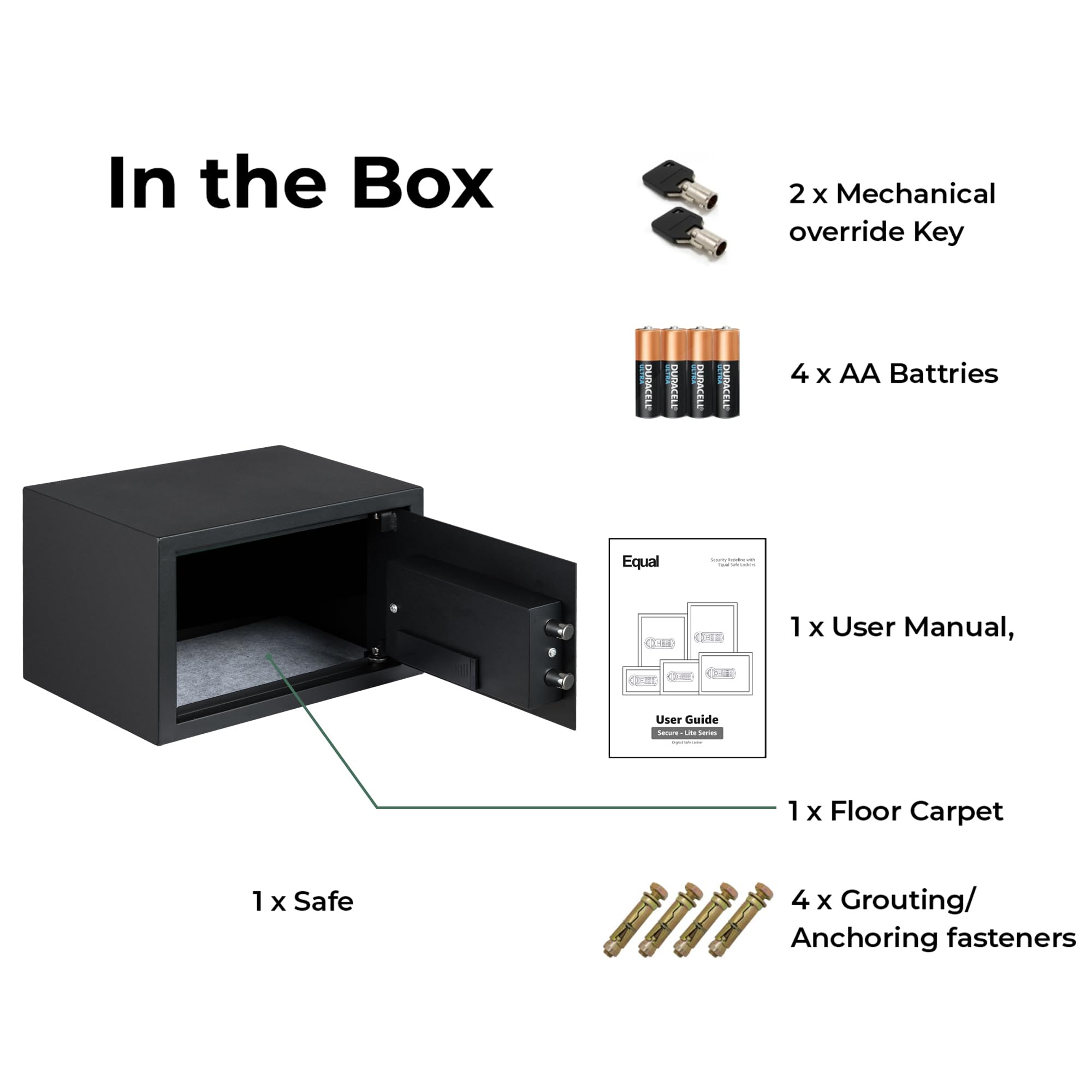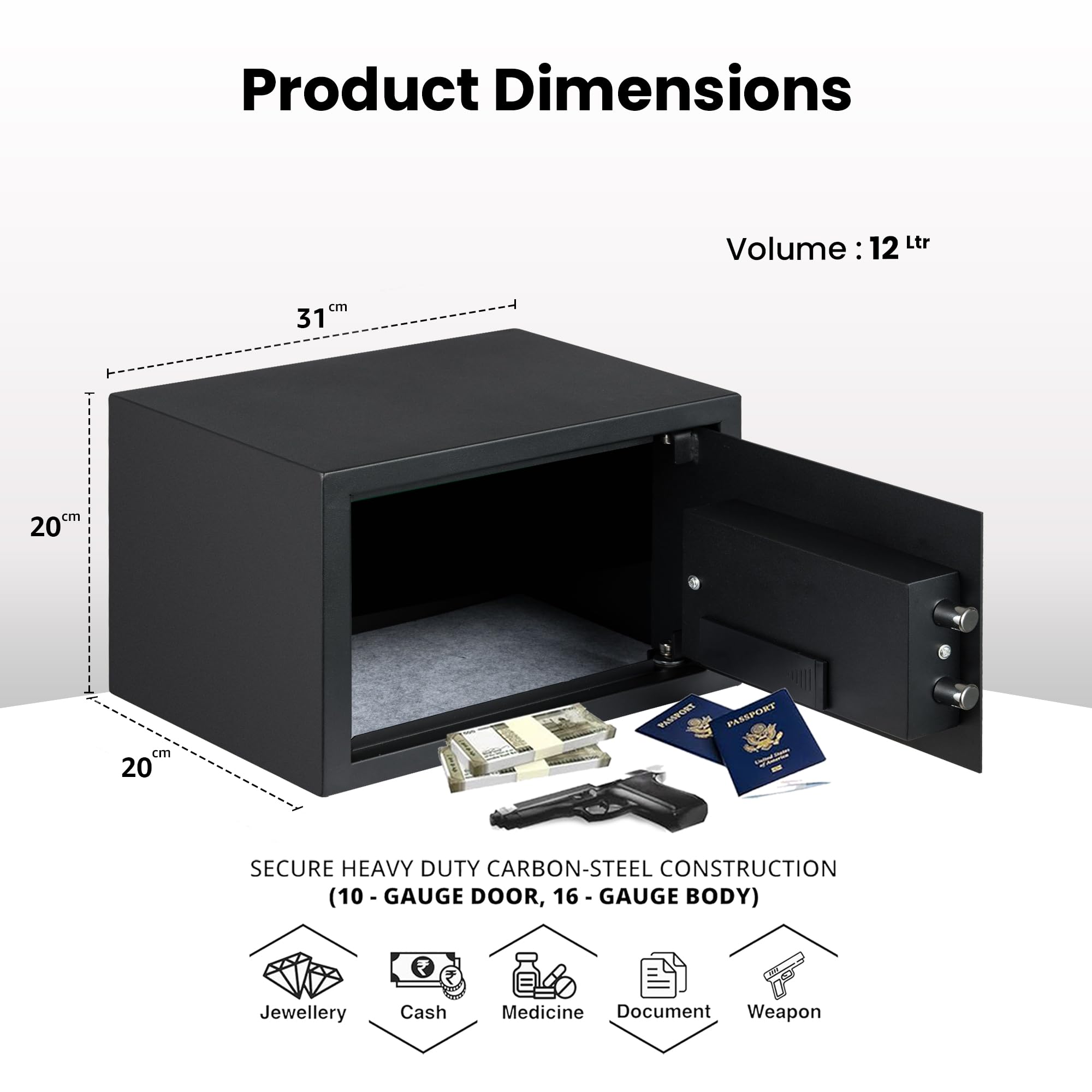 Equal 12L SecureLite Digital Safe Locker with Pincode Access and Emergency Key - Black